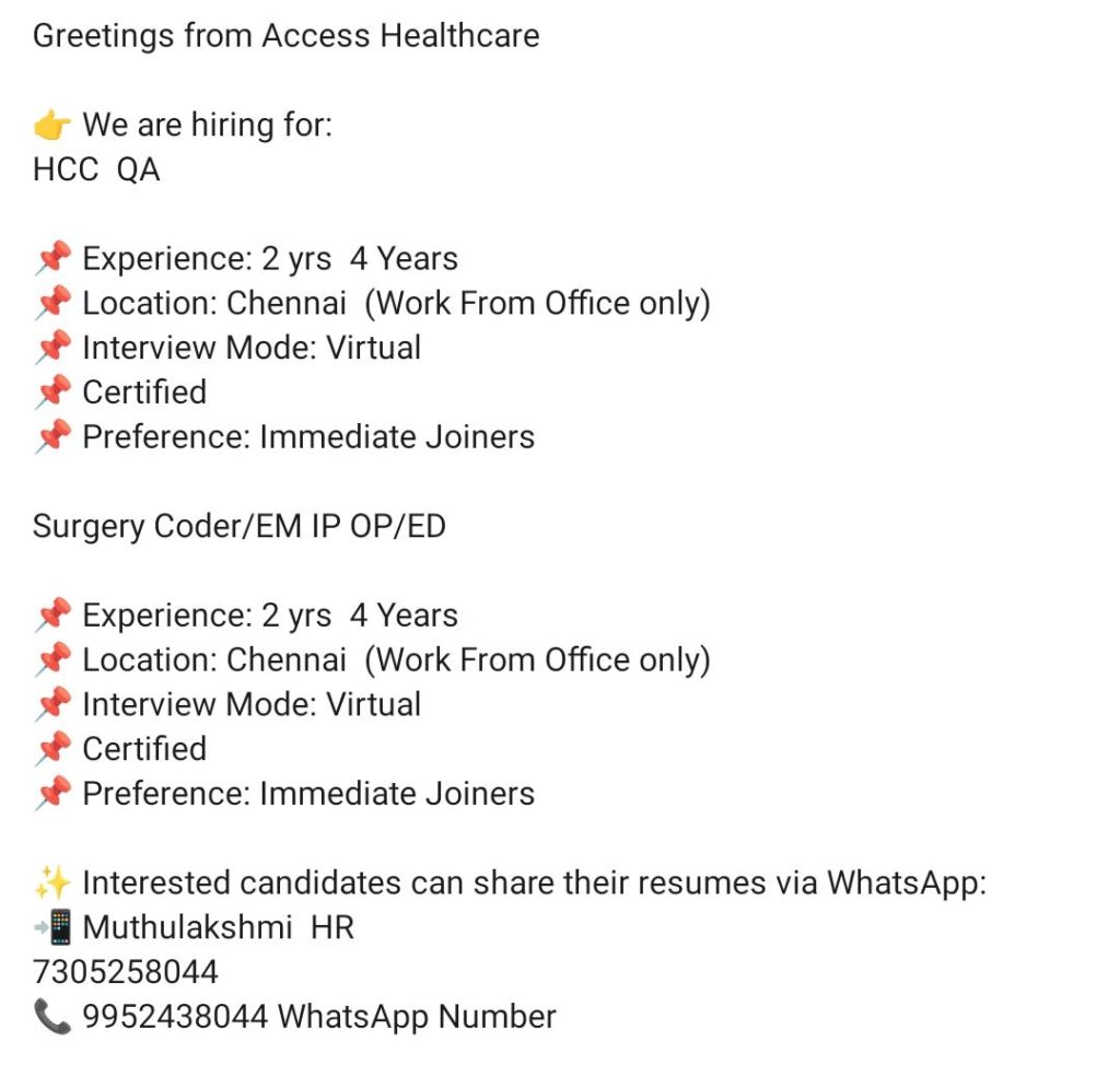 💼 Medical Coding Jobs – Chennai (WFO) 💼