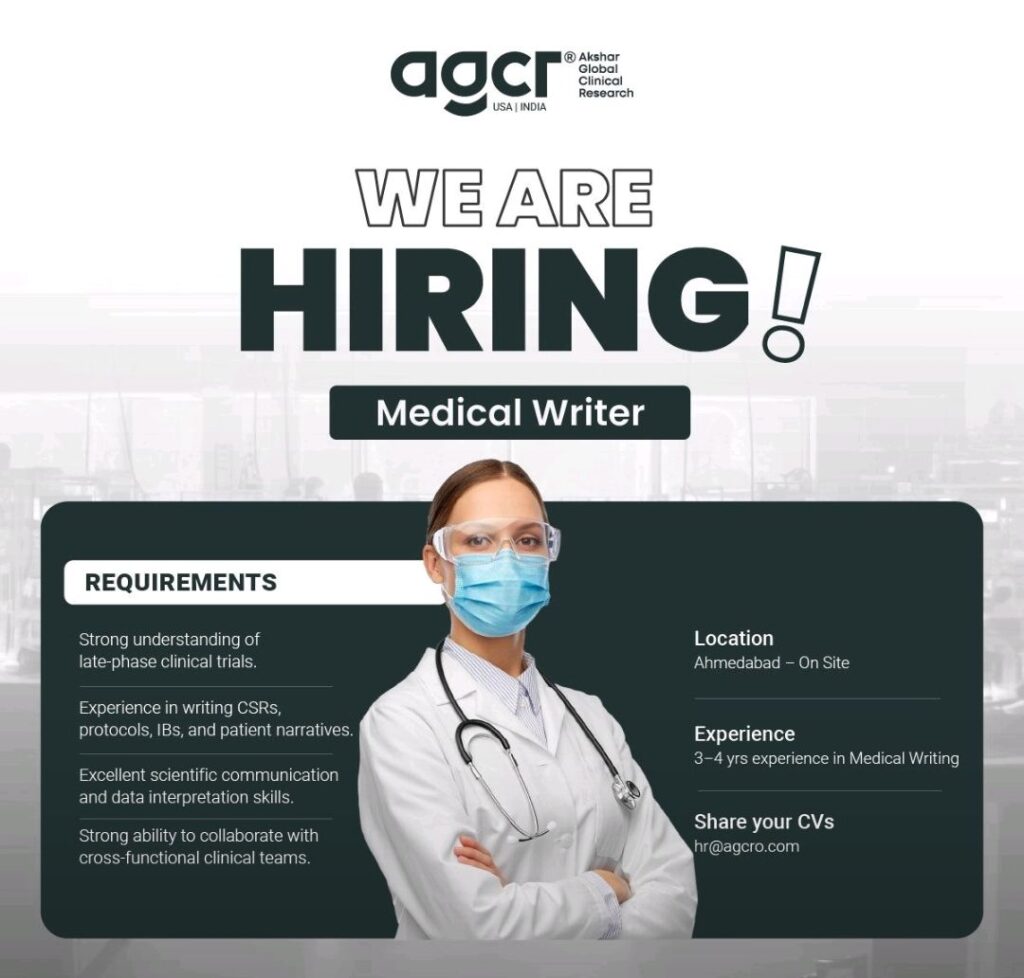 🧬✍️ Medical Writer Job Opening | Ahmedabad👨⚕️ Position: Medical Writer