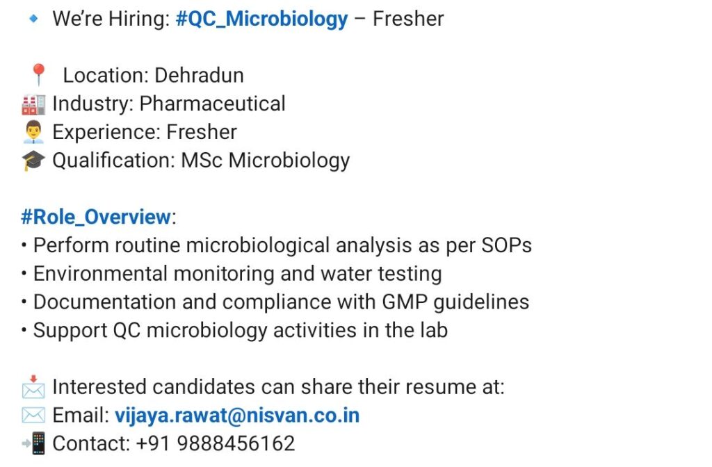 📌 Position: QC Microbiology (Fresher)