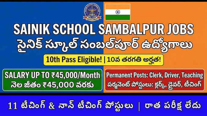 సైనిక్ స్కూల్ సంబల్పూర్ జాబ్స్ 2026 – 11 టీచింగ్ & నాన్ టీచింగ్ పోస్టులు | రాత పరీక్ష లేదు | వెంటనే అప్లై చేయండి