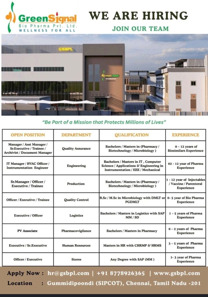 HomeHomeHiring for Pharma Professionals: Multiple Positions at GreenSignal Bio Pharma Hiring for Pharma Professionals: Multiple Positions at GreenSignal Bio Pharma chandrakanth January 12, 2026 Post Views: 11 Related posts: 📢 Granules India Limited Hiring – Walk-in 20th Dec | Pharma / Production / QA / QC SSterling Hospitals Hiring 2025 | Medical Officer, Staff Nurse & Assistant Manager Jobs AP కాంట్రాక్ట్ / అవుట్సోర్సింగ్ ఉద్యోగాలు 2025 | RMC Jobs Recruitment 2025 | అర్హత & దరఖాస్తు వివరాలు BI Analyst Hiring | Data Analytics Job | 2+ Years Experience Share Pinterest Tweet Email Linkedin Whatsapp Telegram Prev Article Next Article Leave a Reply Cancel Reply Save my name, email, and website in this browser for the next time I comment.