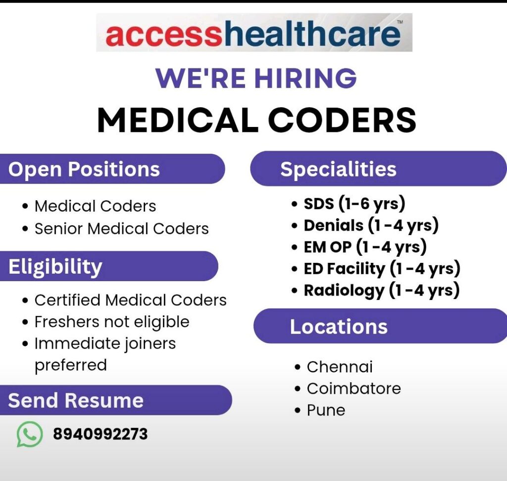 Hiring Medical Coders – Chennai, Coimbatore, Pune | Access Healthcare