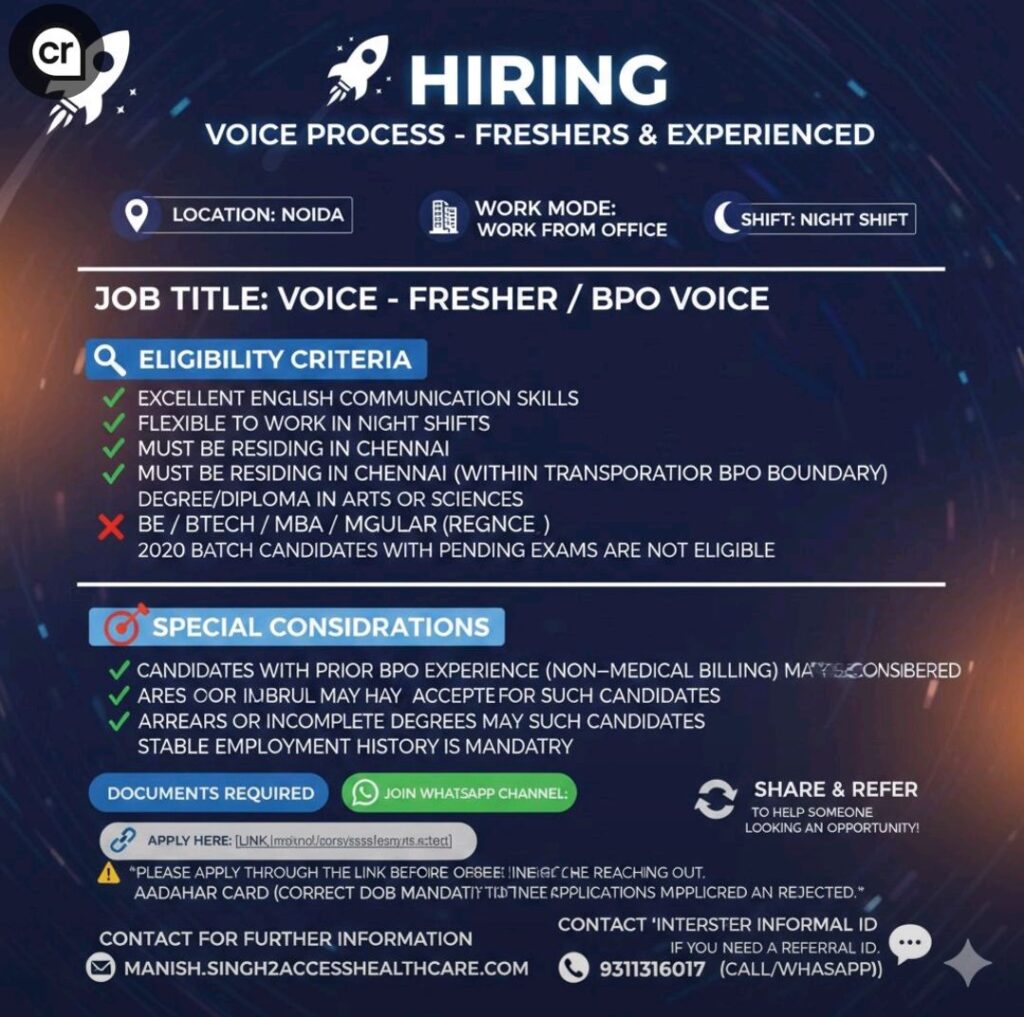 HomePharma JobsVoice Process Agent – Noida Location – Freshers Can Apply Voice Process Agent – Noida Location – Freshers Can Apply chandrakanth January 9, 2026 Post Views: 16 Related posts: Unilever Jobs for Freshers | Associate Global Market Vigilance (Pharmacovigilance) Sun Pharmaceutical Industries Hiring 2026 | Executive – Analytical Development R&D Jobs – Baroda Merck Business Executive Job for Fresh Graduates | Pharma Careers India Urgent Hiring: Quality Control & Engineering Roles | Walk-In on 11 Jan 2026, Vadodara Share Pinterest Tweet Email Linkedin Whatsapp Telegram Prev Article Next Article Leave a Reply Cancel Reply Save my name, email, and website in this browser for the next time I comment.