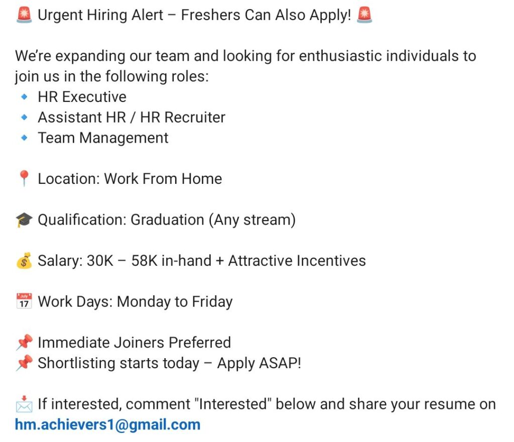 Work From Home HR Jobs for Freshers – HR Executive, Recruiter, Team Management