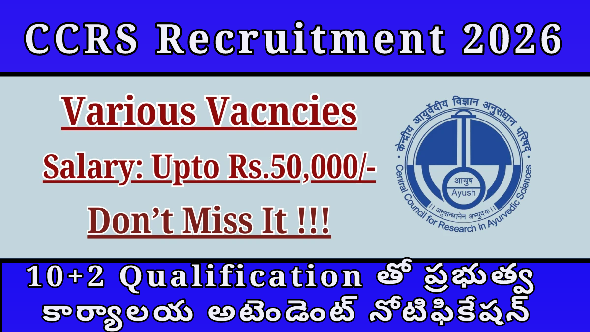 CCRS Recruitment 2026: 10+2 Qualification తో ప్రభుత్వ కార్యాలయ అటెండెంట్ నోటిఫికేషన్