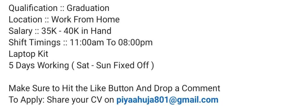HomePharma JobsHiring Now: Work From Home Role | 11am-8pm Shift | Sat-Sun Off | Salary 35-40K Hiring Now: Work From Home Role | 11am-8pm Shift | Sat-Sun Off | Salary 35-40K chandrakanth February 1, 2026 Post Views: 19 Related posts: Unilever Jobs for Freshers | Associate Global Market Vigilance (Pharmacovigilance) Sun Pharmaceutical Industries Hiring 2026 | Executive – Analytical Development R&D Jobs – Baroda “Intas Pharmaceuticals Walk In Drive 2025 | Jobs in Multiple Departments” “Lubrizol Careers 2025 | Hiring Production Executive – Navi Mumbai Maharashtra” Share Pinterest Tweet Email Linkedin Whatsapp Telegram Prev Article Next Article Leave a Reply Cancel Reply Save my name, email, and website in this browser for the next time I comment.