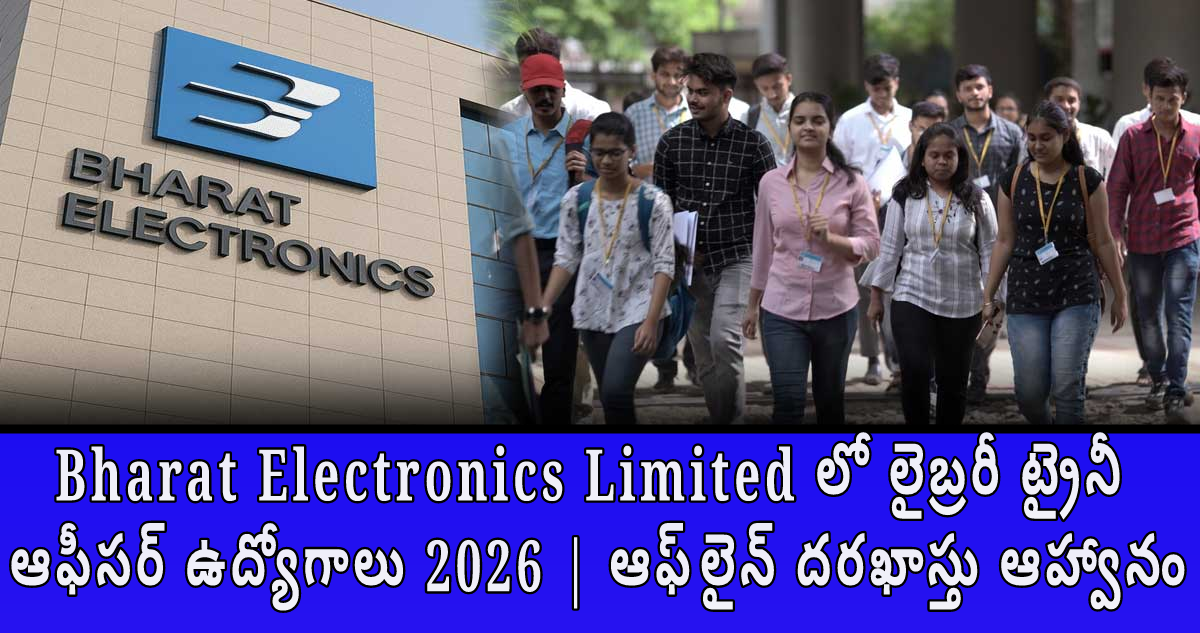 • 📚✨ Bharat Electronics Limited లో లైబ్రరీ ట్రైనీ ఆఫీసర్ ఉద్యోగాలు 2026 | BEL Recruitment | ఆఫ్‌లైన్ దరఖాస్తు ఆహ్వానం