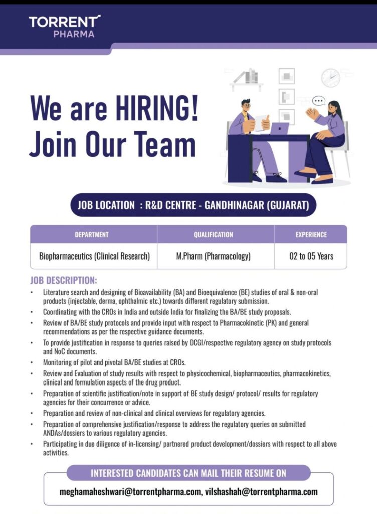 • Torrent Pharma Recruitment: BA/BE Studies & Clinical Research Role | Gandhinagar Location