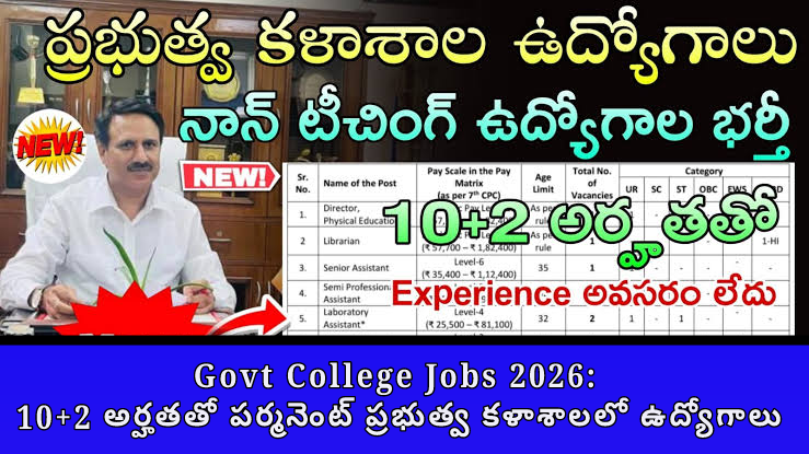 🎓 Govt College Jobs 2026: 10+2 అర్హతతో పర్మనెంట్ ప్రభుత్వ కళాశాలలో ఉద్యోగాలు