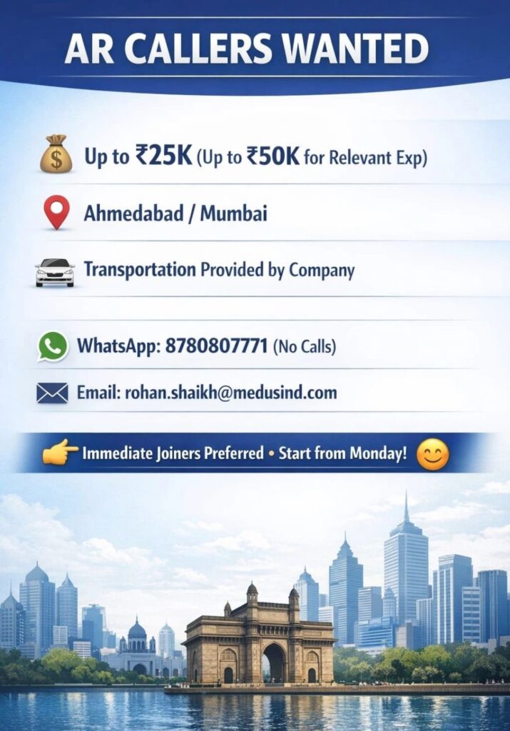 AR Caller vacancy with Free Transport | Mumbai & Ahmedabad | Up to ₹50k