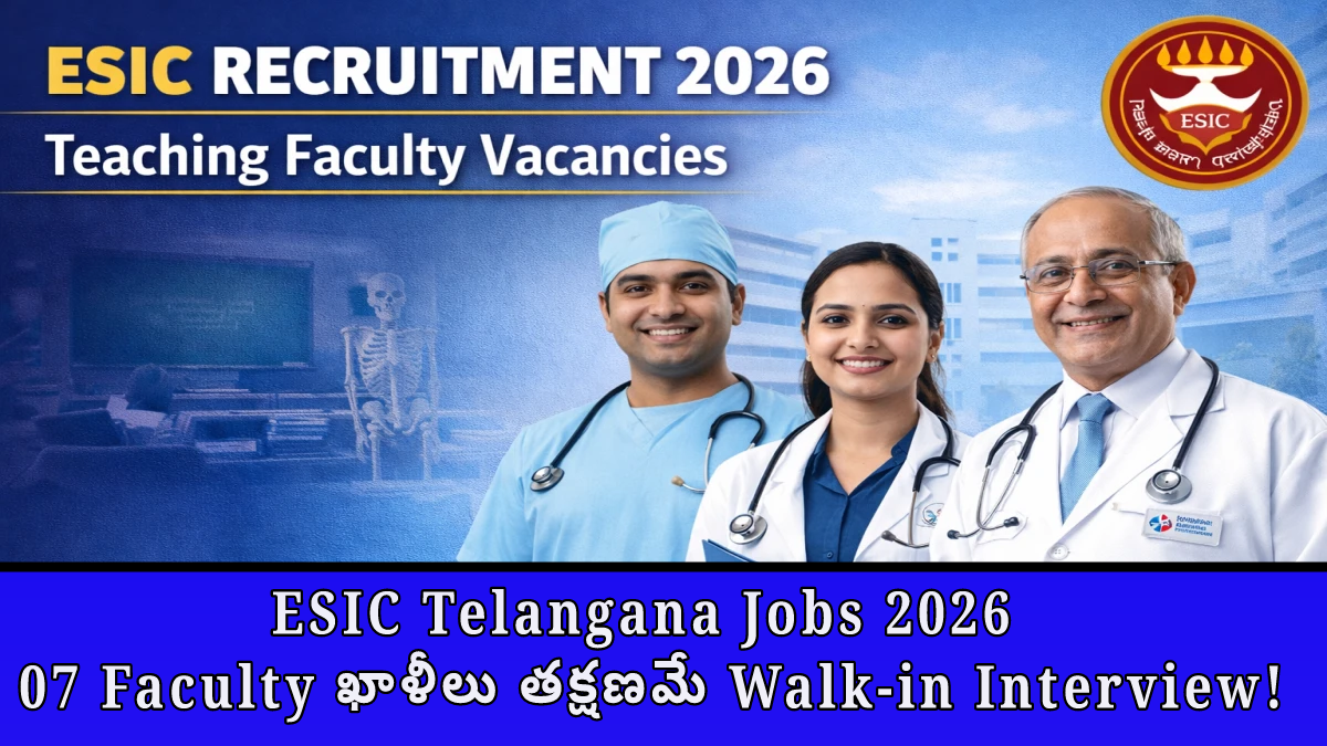 🔥 ESIC Telangana Jobs 2026 – 07 Faculty ఖాళీలు – తక్షణమే Walk-in Interview!