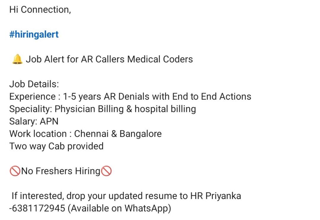 Hiring AR Denials Specialist – Physician & Hospital Billing | Chennai & Bangalore