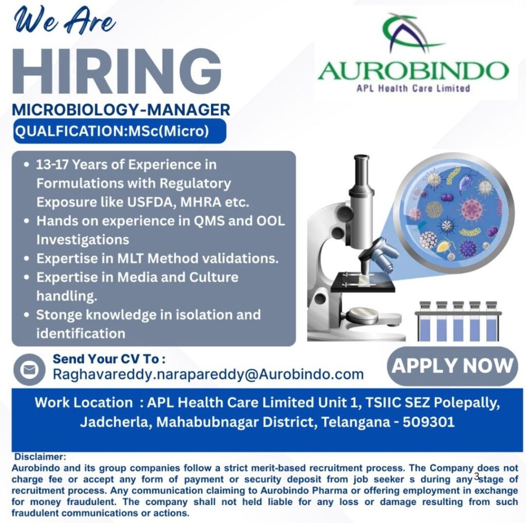 HomeHomeHiring Microbiology Manager – MSc Microbiology | Aurobindo | Telangana | 13-17 Years Experience Hiring Microbiology Manager – MSc Microbiology | Aurobindo | Telangana | 13-17 Years Experience chandrakanth March 1, 2026 Post Views: 5 Related posts: SSterling Hospitals Hiring 2025 | Medical Officer, Staff Nurse & Assistant Manager Jobs AP కాంట్రాక్ట్ / అవుట్సోర్సింగ్ ఉద్యోగాలు 2025 | RMC Jobs Recruitment 2025 | అర్హత & దరఖాస్తు వివరాలు Sai Life Sciences Walk-In Interview 2026 | Analytical R&D (API) Jobs – Hyderabad HCC Coder WFH Opportunity | Urgent Hiring | Salary up to ₹50,000 Share Pinterest Tweet Email Linkedin Whatsapp Telegram Prev Article Next Article Leave a Reply Cancel Reply Save my name, email, and website in this browser for the next time I comment.