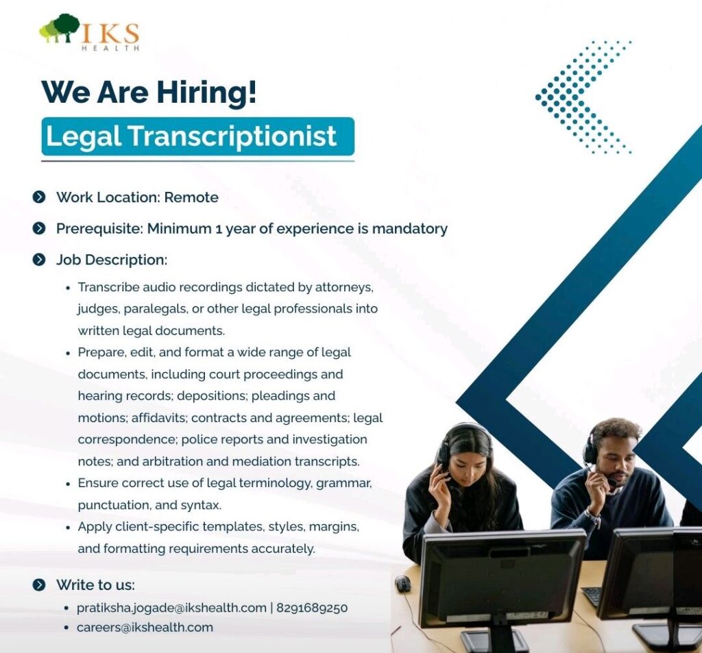 Legal Transcriptionist Job – Work from Home | iKS Health Careers