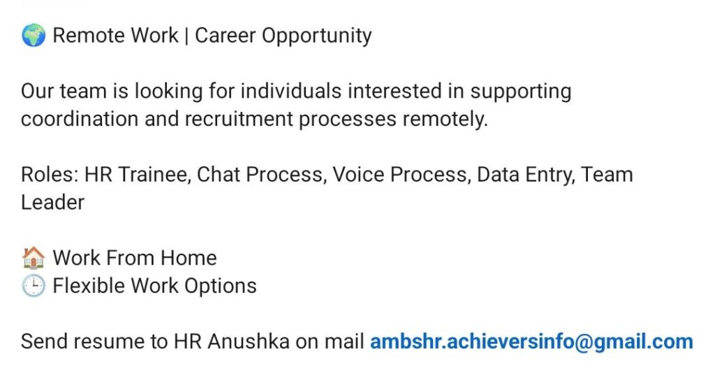 HomeHomeRemote HR Trainee, Voice Process & Team Leader Vacancy | Work From Home | Email CV Remote HR Trainee, Voice Process & Team Leader Vacancy | Work From Home | Email CV chandrakanth March 12, 2026 Post Views: 2 Related posts: SSterling Hospitals Hiring 2025 | Medical Officer, Staff Nurse & Assistant Manager Jobs AP కాంట్రాక్ట్ / అవుట్సోర్సింగ్ ఉద్యోగాలు 2025 | RMC Jobs Recruitment 2025 | అర్హత & దరఖాస్తు వివరాలు Sai Life Sciences Walk-In Interview 2026 | Analytical R&D (API) Jobs – Hyderabad Intern Clinical Research Coordinator Jobs in PCMC, Pune – Freshers Hiring Share Pinterest Tweet Email Linkedin Whatsapp Telegram Prev Article Next Article Leave a Reply Cancel Reply Save my name, email, and website in this browser for the next time I comment.