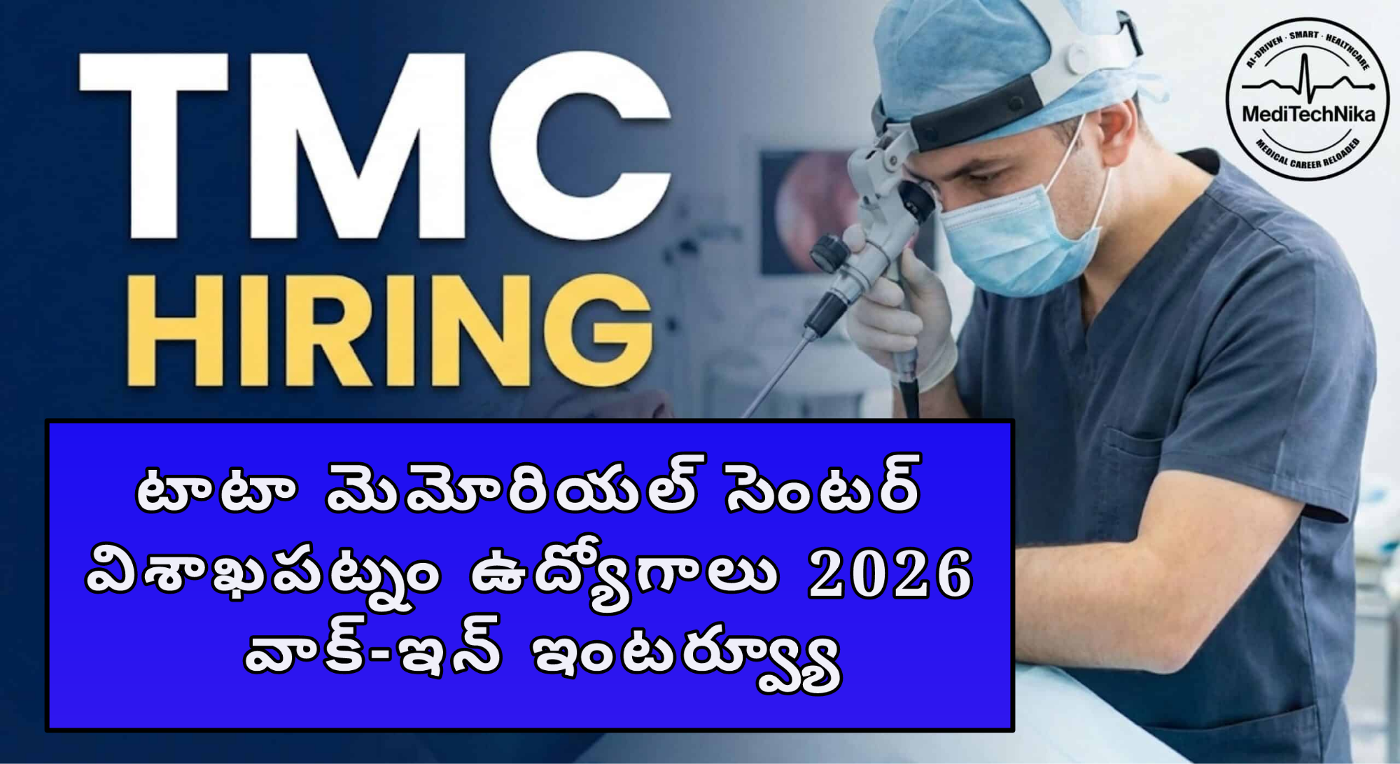 ఆంధ్రప్రదేశ్లోని 📍 Visakhapatnam లో ఉన్న Homi Bhabha Cancer Hospital and Research Centre నుండి ICMR Project లో భాగంగా పలు ఉద్యోగాల భర్తీకి నోటిఫికేషన్ విడుదలైంది. అర్హులైన అభ్యర్థులు Walk-in Interview కు హాజరు కావాలి.