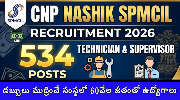 🏛️ CNP Nashik SPMCIL Recruitmentడబ్బులు ముద్రించే సంస్థలో 60వేల జీతంతో ఉద్యోగాలు 💰\n🖨️ CNP Nashik SPMCIL Recruitment 2026 | Supervisor & Junior Office Assistant | 534 Posts | Apply Online Now\n🏛️ CNP Nashik SPMCIL Recruitment 2026 Latest Junior Office Assistant, Supervisor & Junior Technician Notification 2026 Apply Online Now : ఉద్యోగులకు కేంద్ర ప్రభుత్వం నుంచి భారీ నోటిఫికేషన్ వచ్చేసింది…