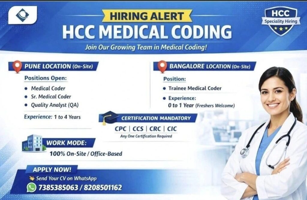 HCC Medical Coder Jobs – Pune & Bangalore (On-Site) – Freshers to 4 Yrs Exp – CPC/CRC/CCS Mandatory