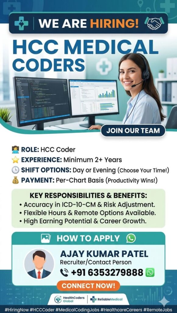 HomeHomeHCC Medical Coder Jobs – Work From Home, Per-Chart Pay HCC Medical Coder Jobs – Work From Home, Per-Chart Pay chandrakanth April 8, 2026 Post Views: 6 Related posts: SSterling Hospitals Hiring 2025 | Medical Officer, Staff Nurse & Assistant Manager Jobs AP కాంట్రాక్ట్ / అవుట్సోర్సింగ్ ఉద్యోగాలు 2025 | RMC Jobs Recruitment 2025 | అర్హత & దరఖాస్తు వివరాలు Sai Life Sciences Walk-In Interview 2026 | Analytical R&D (API) Jobs – Hyderabad Fresher Walk-in Interviews in Daman: B.Pharm, M.Sc, ITI, Diploma | USV Pharma Jobs – 18 Jan 2026 Share Pinterest Tweet Email Linkedin Whatsapp Telegram Prev Article Next Article Leave a Reply Cancel Reply Save my name, email, and website in this browser for the next time I comment.