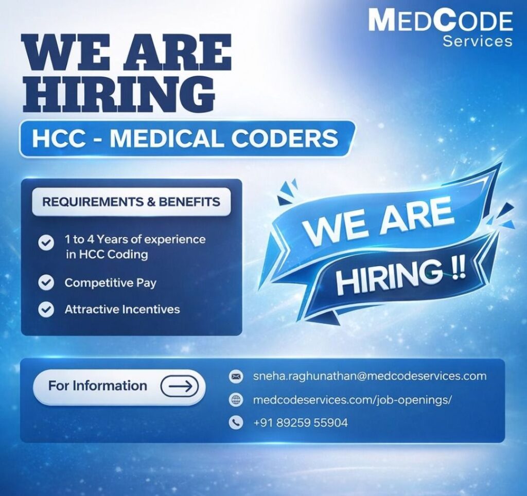 HomeHomeHiring HCC Medical Coders | 1–4 Years Experience | Attractive Incentives Hiring HCC Medical Coders | 1–4 Years Experience | Attractive Incentives chandrakanth April 8, 2026 Post Views: 5 Related posts: SSterling Hospitals Hiring 2025 | Medical Officer, Staff Nurse & Assistant Manager Jobs AP కాంట్రాక్ట్ / అవుట్సోర్సింగ్ ఉద్యోగాలు 2025 | RMC Jobs Recruitment 2025 | అర్హత & దరఖాస్తు వివరాలు Sai Life Sciences Walk-In Interview 2026 | Analytical R&D (API) Jobs – Hyderabad Fresher Walk-in Interviews in Daman: B.Pharm, M.Sc, ITI, Diploma | USV Pharma Jobs – 18 Jan 2026 Share Pinterest Tweet Email Linkedin Whatsapp Telegram Prev Article Next Article Leave a Reply Cancel Reply Save my name, email, and website in this browser for the next time I comment.
