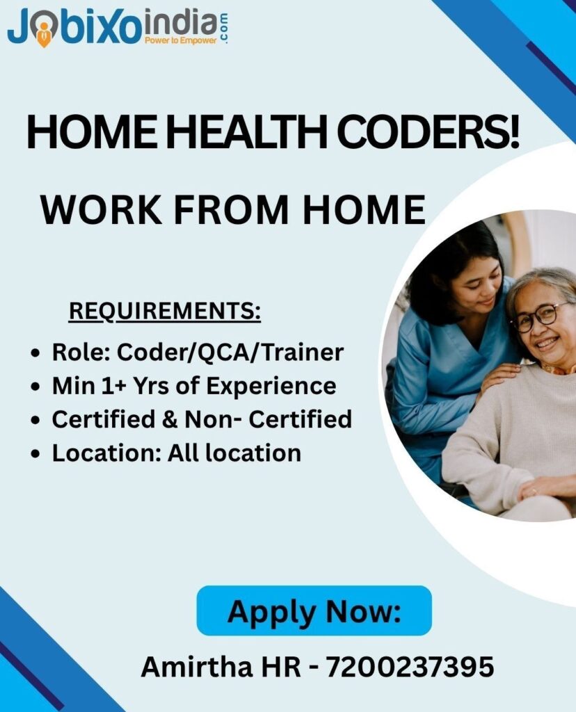 HomeHomeHome Health Coder (WFH) – Coder / QCA / Trainer – 1+ Year Exp – Certified & Non-Certified – All Locations Home Health Coder (WFH) – Coder / QCA / Trainer – 1+ Year Exp – Certified & Non-Certified – All Locations chandrakanth April 26, 2026 Post Views: 2 Related posts: SSterling Hospitals Hiring 2025 | Medical Officer, Staff Nurse & Assistant Manager Jobs AP కాంట్రాక్ట్ / అవుట్సోర్సింగ్ ఉద్యోగాలు 2025 | RMC Jobs Recruitment 2025 | అర్హత & దరఖాస్తు వివరాలు Sai Life Sciences Walk-In Interview 2026 | Analytical R&D (API) Jobs – Hyderabad Fresher Walk-in Interviews in Daman: B.Pharm, M.Sc, ITI, Diploma | USV Pharma Jobs – 18 Jan 2026 Share Pinterest Tweet Email Linkedin Whatsapp Telegram Prev Article Next Article Leave a Reply Cancel Reply Save my name, email, and website in this browser for the next time I comment.