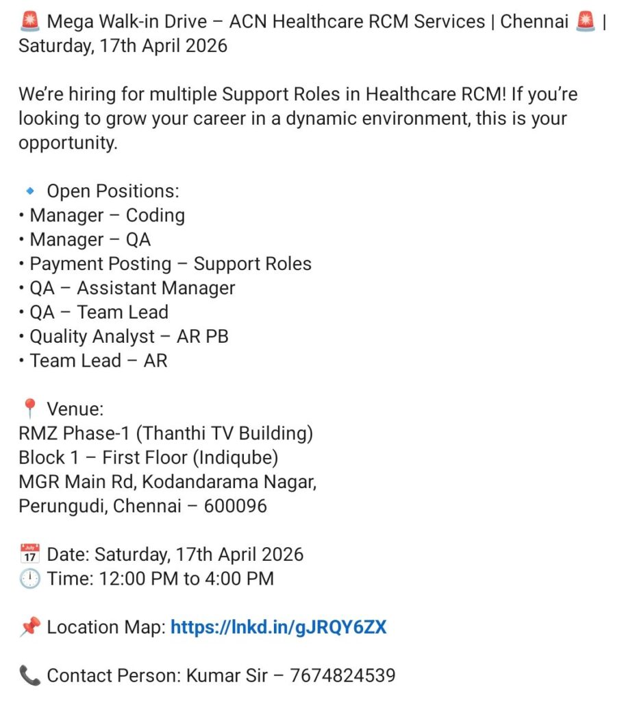 Mega Walk-In – Manager, QA, Team Lead, Payment Posting, AR – ACN Healthcare RCM (Chennai) – April 17, 2026