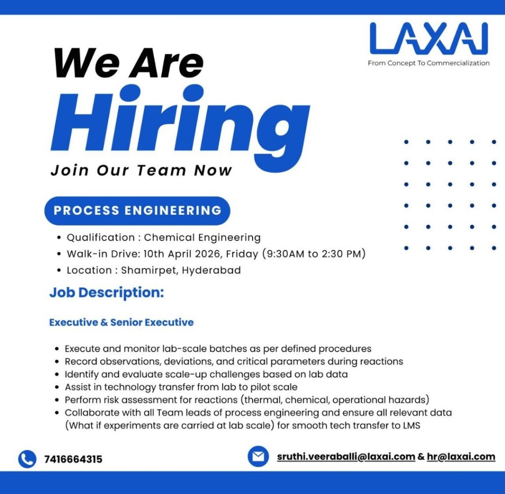 HomeHomeProcess Engineering Job Walk-in Drive Hyderabad | Executive & Senior Executive Roles | 10th April 2026 Process Engineering Job Walk-in Drive Hyderabad | Executive & Senior Executive Roles | 10th April 2026 chandrakanth April 8, 2026 Post Views: 3 Related posts: Hiring Home Health Coding Experts: Team Lead, QA & Coder | Mumbai, Hyderabad, Chennai | Up to ₹15 LPA Patient Calling RCM Jobs in Chennai – Night Shift | 1–3 Years Experience | Immediate Joining HCC Medical Coder Walk-In Drive 2026 – Cotiviti Coimbatore (Apr 6–10) Assistant Manager – Regulatory Affairs (ROW Market, OSD) Share Pinterest Tweet Email Linkedin Whatsapp Telegram Prev Article Next Article Leave a Reply Cancel Reply Save my name, email, and website in this browser for the next time I comment.