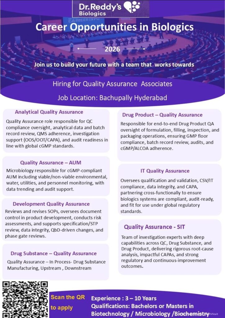 HomeHomeQuality Assurance (QA) – Biologics (Bachupally, Hyderabad) – Analytical, Drug Product, AUM, Development, Drug Substance, IT, SIT Quality Assurance (QA) – Biologics (Bachupally, Hyderabad) – Analytical, Drug Product, AUM, Development, Drug Substance, IT, SIT chandrakanth April 10, 2026 Post Views: 2 Related posts: Hiring Home Health Coding Experts: Team Lead, QA & Coder | Mumbai, Hyderabad, Chennai | Up to ₹15 LPA Patient Calling RCM Jobs in Chennai – Night Shift | 1–3 Years Experience | Immediate Joining HR Executive Job in Chennai & Madurai | Zaitoon Restaurants | ₹25k–₹30k | Hiring Now Remote Medical Coder – Freshers & Experienced – Trispect Health Medics (WFH, Night Shift, Training Provided) Share Pinterest Tweet Email Linkedin Whatsapp Telegram Prev Article Next Article Leave a Reply Cancel Reply Save my name, email, and website in this browser for the next time I comment.