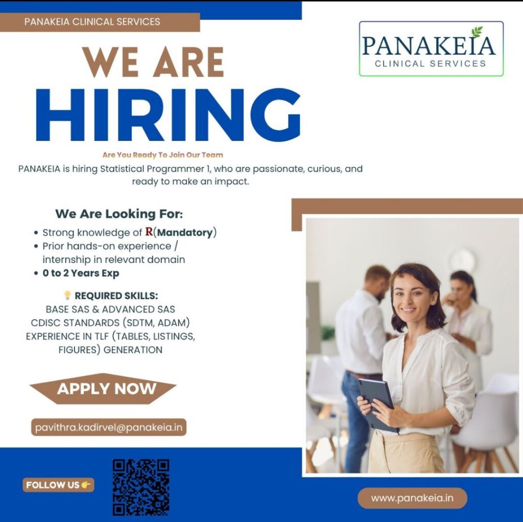 HomeHomeStatistical Programmer I – Panakeia Clinical Services – 0–2 Yrs Exp – R, SAS, CDISC (SDTM/ADAM) – Remote/India Statistical Programmer I – Panakeia Clinical Services – 0–2 Yrs Exp – R, SAS, CDISC (SDTM/ADAM) – Remote/India chandrakanth April 9, 2026 Post Views: 3 Related posts: SSterling Hospitals Hiring 2025 | Medical Officer, Staff Nurse & Assistant Manager Jobs AP కాంట్రాక్ట్ / అవుట్సోర్సింగ్ ఉద్యోగాలు 2025 | RMC Jobs Recruitment 2025 | అర్హత & దరఖాస్తు వివరాలు Sai Life Sciences Walk-In Interview 2026 | Analytical R&D (API) Jobs – Hyderabad Fresher Walk-in Interviews in Daman: B.Pharm, M.Sc, ITI, Diploma | USV Pharma Jobs – 18 Jan 2026 Share Pinterest Tweet Email Linkedin Whatsapp Telegram Prev Article Next Article Leave a Reply Cancel Reply Save my name, email, and website in this browser for the next time I comment.